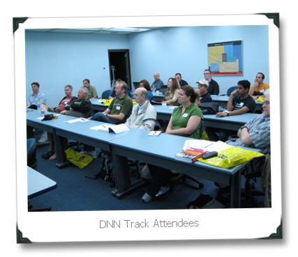 We had a very well-plugged track on DotNetNuke once again at the Orlando Code Camp.  I was very happy to see that we all or nearly all of the seats filled throughout the day in each session.  We were very lucky to be promoting a recent book, Professional DotNetNuke 5, which gave us a road map to build our track on.  It also allowed those that attended the first session a reason to stick around in the room for the entire day.  I would estimate that about 30-40% of those that were in the first session were in each subsequent session.  And we also had a couple people that flew in just for the DNN track.  One came in from Maryland, and the other from Boston.  I only know of one such person at the South Florida Code Camp, who flew in from Pheonix.