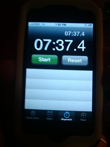 Our server was given a cell phone by another server to use the timer application it had.  Right when he said, “Go,” I began to bite into my first wing, when he immediately told me to stop.  I had nearly bit off my first chunk of meat before being told to stop!  The phone was a touch screen, and went into screen saver mode – effectively making it useless to the non-owner.  Another employee stepped up to sit with us, and I was well on my way within a couple of minutes.