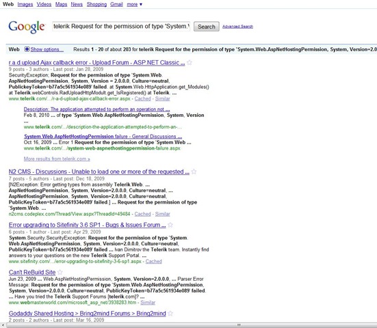 Search Results: Telerik Error Message on Google