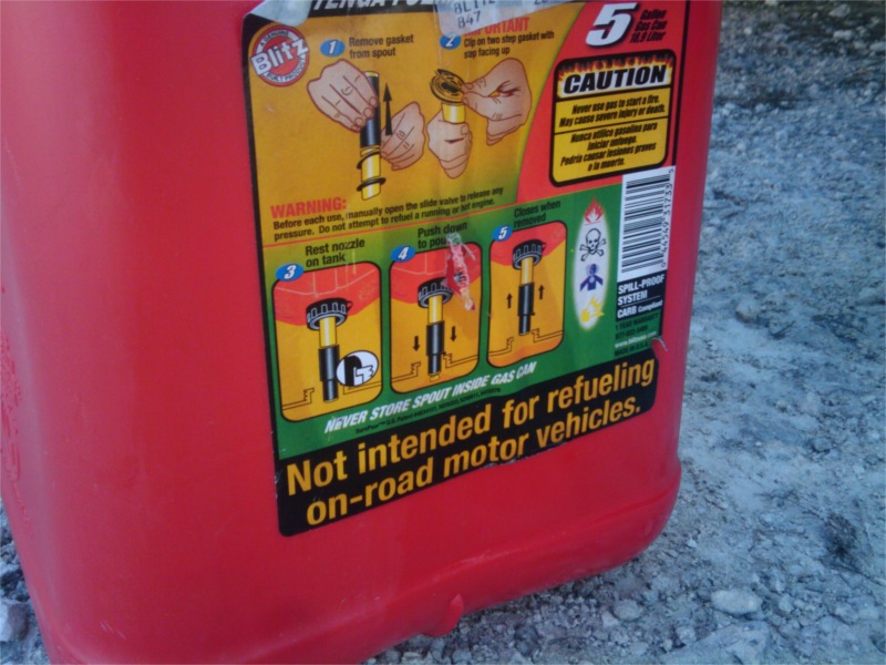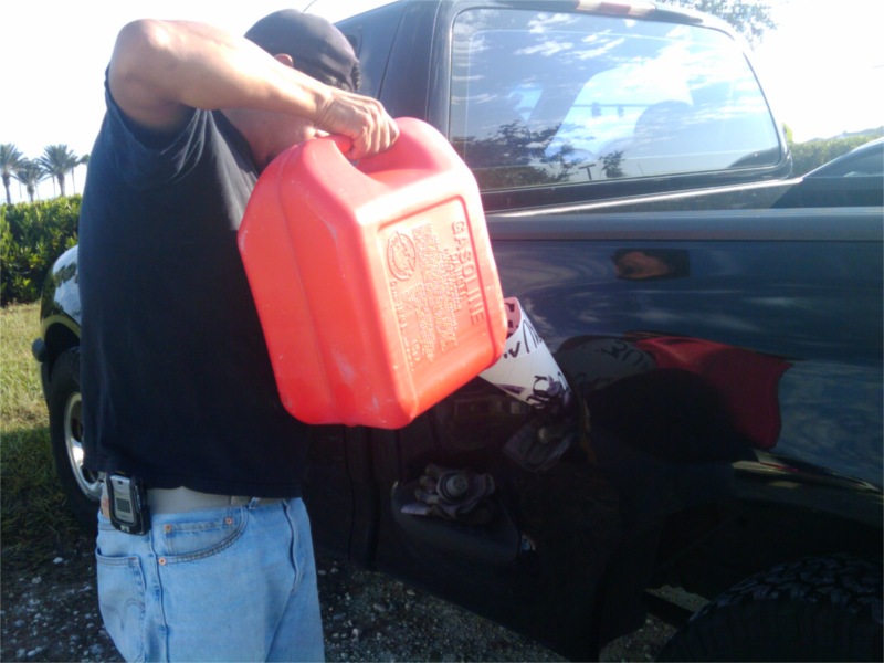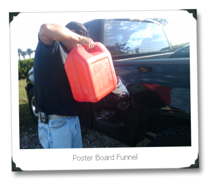 Hilarious!!!  This is why he was having such troubles using something that seemed as simple as a gas can.   He came back form his truck with a poster board and refueled my truck.